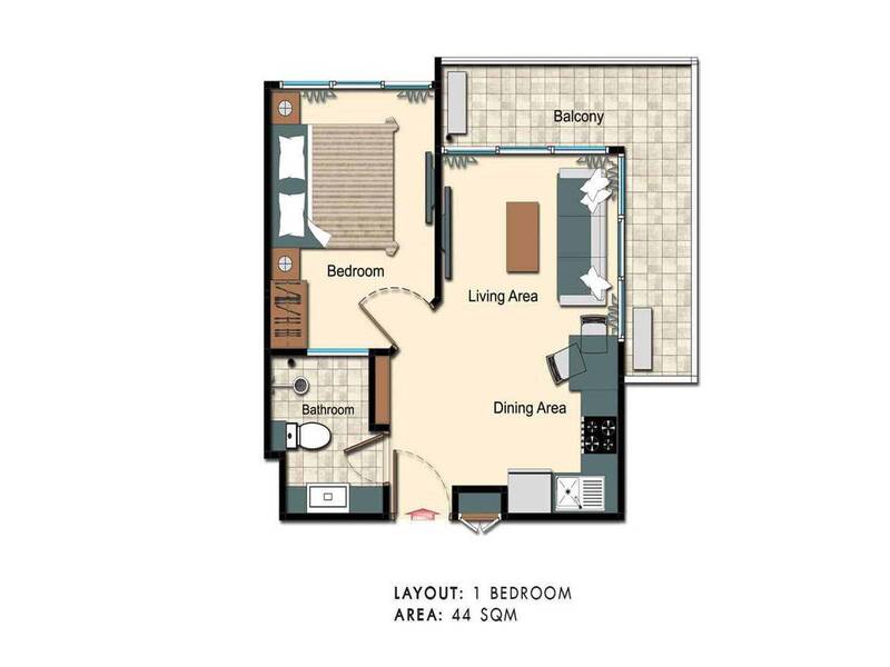 1 ห้องนอน ขนาด 44 ตร.ม. ห้องมุม ระเบียง 2 ด้าน วิวเมืองสวย พร้อมเฟอร์นิเจอร์ครบ