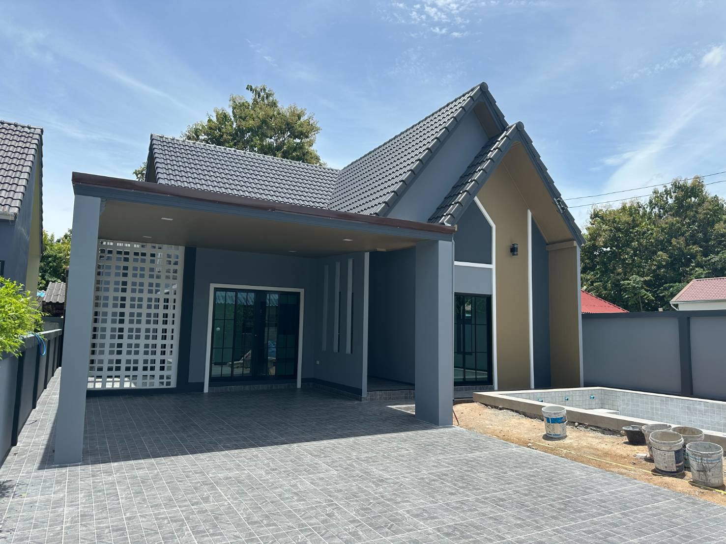 ✅ สนามหญ้าหน้าบ้านกว้าง สามารถทำสระว่ายน้ำเพิ่มได้