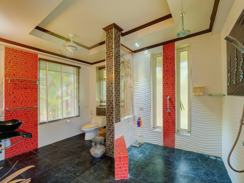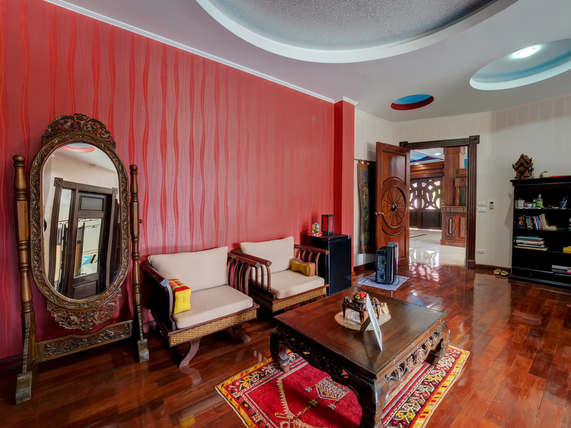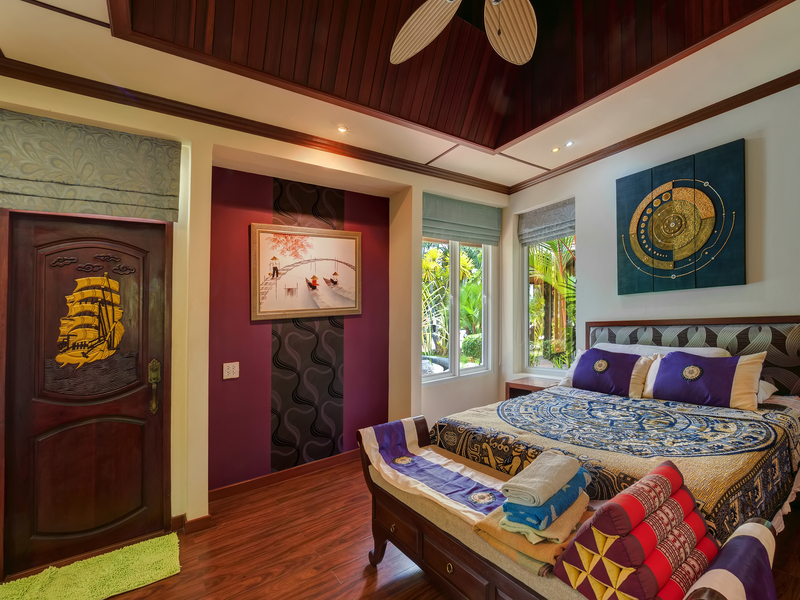 Decorated in warm tones, it complements the architectural style of the main villa beautifully.
