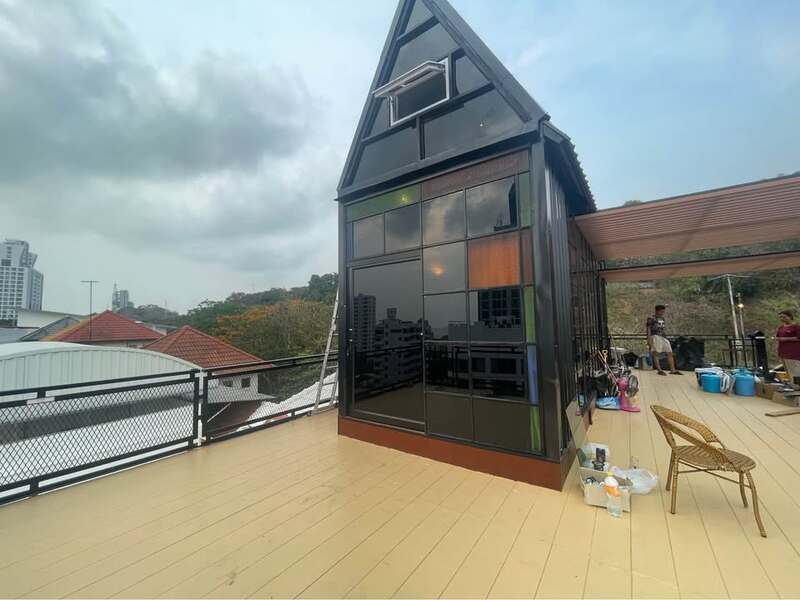 - Nordic-style rooftop with sea view and mountain view behind the property — includes BBQ area