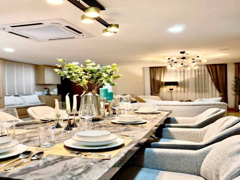 - Marble dining table area