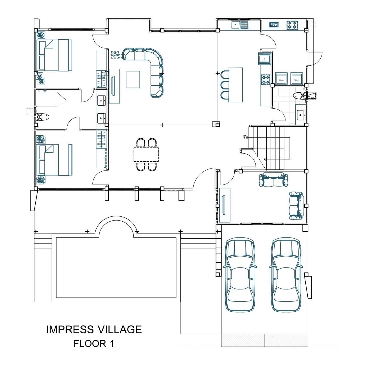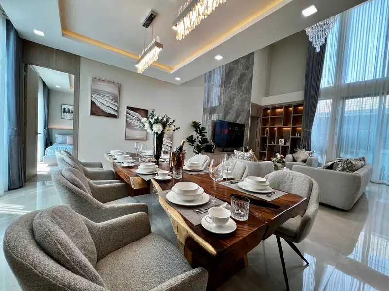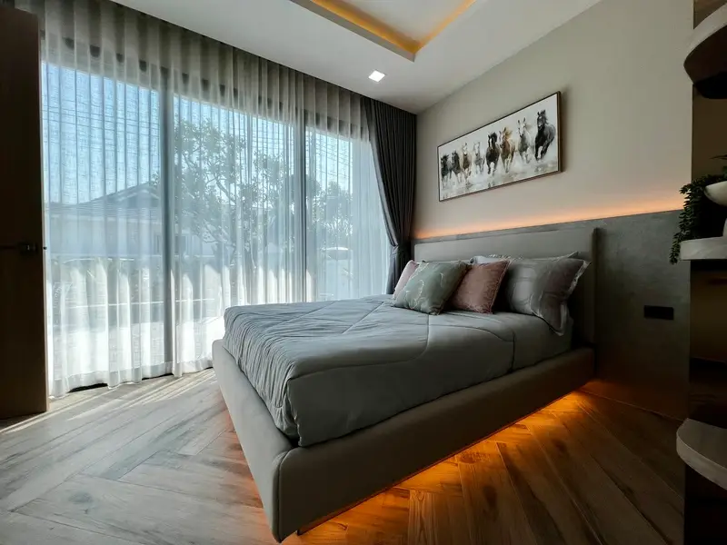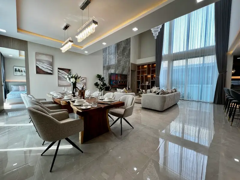 A large detached pool villa set within an exclusive collection of only five private homes. Offering space, privacy, and modern comfort in one of East Pattaya’s most desirable residential areas near Siam Country Club. Perfectly designed for family living with generous indoor space and a private swimming pool.